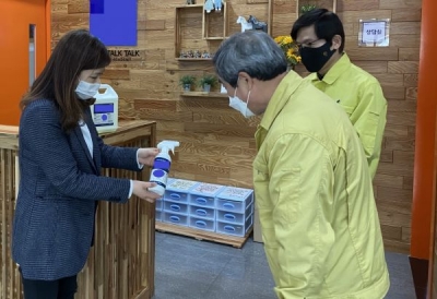 살균소독제는 학생들의 손이 많이 닿는 출입문 손잡이·책상·안내데스크 등 시설 내 위생관리가 필요한 곳에 분무해 사용하면 된다.