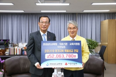 지난 3월 25일부터 31일까지 경남교육청 소속 부서 교육지원청, 직속기관 직원 2,358명이 자발적인 모금 활동을 통해 마련한 52,063,780원을 6일 사회복지공동모금회에 전달했다.