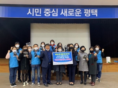[충청뉴스큐] 희망이음 봉사단은 지난 5일 평택시청 대회의실에서 외국인과 다문화 가정을 위해 직접 손세탁 가능한 마스크 600매를 제작해 기탁했다.