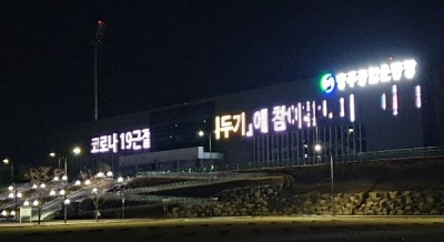 충주시는 7일 호암동에 위치한 충주종합운동장의 외벽에 설치된 미디어 파사드 설비에 ‘코로나19 예방수칙’과 ‘사회적 거리두기’ 등 코로나19의 확산 방지를 위한 실천 사항을 알리는 문구를 대대적으로 표출한다고 알렸다.