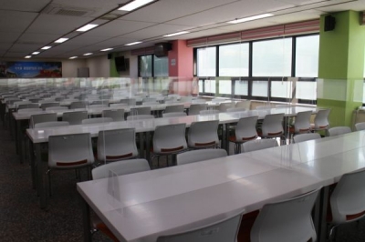 투명 칸막이 설치로 직원 및 이용자들이 식사 시 일정 거리를 유지해 비대면 식사를 할 수 있어 코로나19의 비말 전파 가능성을 사전 차단하고 있다.