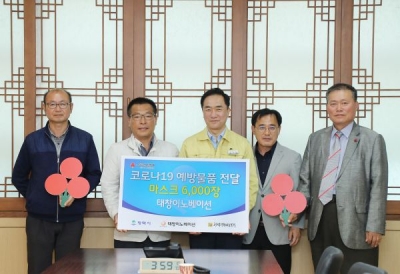 [충청뉴스큐] ㈜태창이노베이션은 지난 6일 평택시청 대외협력실에서 지역사회 코로나 19 감염 및 확산 방지를 위해 kf94 마스크 6,000장을 전달했다.