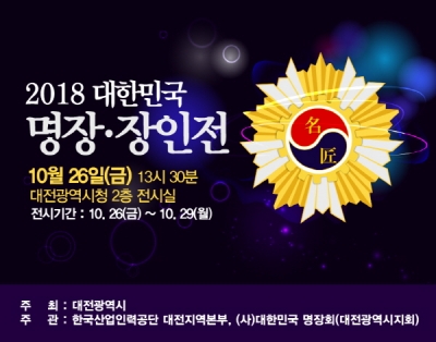 [충청뉴스큐] 대전시는 오는 26일 오후 1시 30분 시청 2층 로비에서 명장·장인 작품전시회 개막식을 갖고 오는 26일부터 29일까지 4일 동안 시청 2층 제2전시실에서 전시를 진행한다.