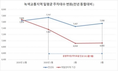 시행 전인 '19년 12월 한 달 간 일평균 대비 421대가 감소한 수치다.