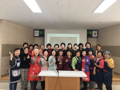식생활지도자 양성과정을 수강한 2명의 식생활지도자가 강사로 나서 이달에는 생활개선회 회원을 대상으로 우리 밀을 이용한 세계 맛 기행교육을, 11월에는 학생들을 대상으로 전통발효음식을 활용한 식체험교육을 실시한다.