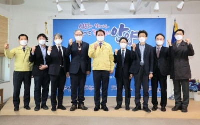 이날 간담회에서는 최 시장과 의료진들이 시민에게 희망과 용기를 전하는 영상메시지 녹화도 있었다.