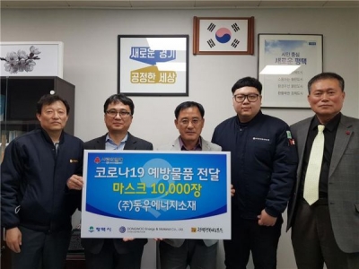 [충청뉴스큐] ㈜동우에너지소재는 지난 9일 평택시청 사회복지국장실에서 지역사회 코로나19 감염 및 확산 방지를 위해 일회용 마스크 1만장을 기탁했다.