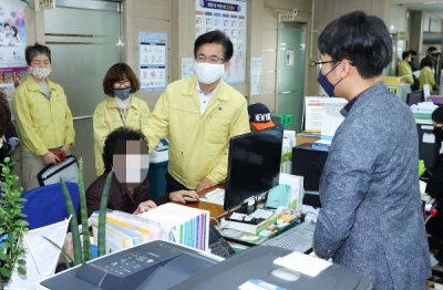 긴급재난지원금 지급을 마친 허태정 시장은, 코로나19로 인한 시설점검, 방역, 선거, 긴급재난지원금 지급 등 지난 2월부터 쉼 없이 일해 온 태평1동 김낙례 동장과 직원들을 격려했다.