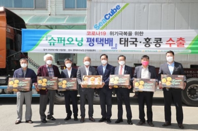 [충청뉴스큐] 평택시가 지난 13일 평택과수농협조합장, 농협중앙회 평택시지부장, 경기지역본부장, 농정지원단장 등 10여명이 참석한 가운데, 평택시 농특산물 브랜드 슈퍼오닝배를 태국과 홍콩으로 수출하는 발대식을 가졌다고 밝혔다.
