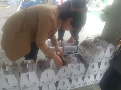 [충청뉴스큐] 청주시 산림관리과 직원들이 코로나19 장기화로 인한 소비침체로 피해를 입고 있는 소규모 임가들을 돕기 위해 친환경 임산물 팔아주기 운동에 동참했다.