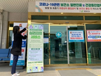 [충청뉴스큐] 청주시 청원보건소가 지역주민을 대상으로 심리적 안정과 원활한 일상생활 회복을 도모하기 위해‘코로나19 심리지원 서비스’를 지원하고 있으며 이를 홍보하기 위해 지역 내 행정복지센터 10곳에 배너 설치를 완료했다.
