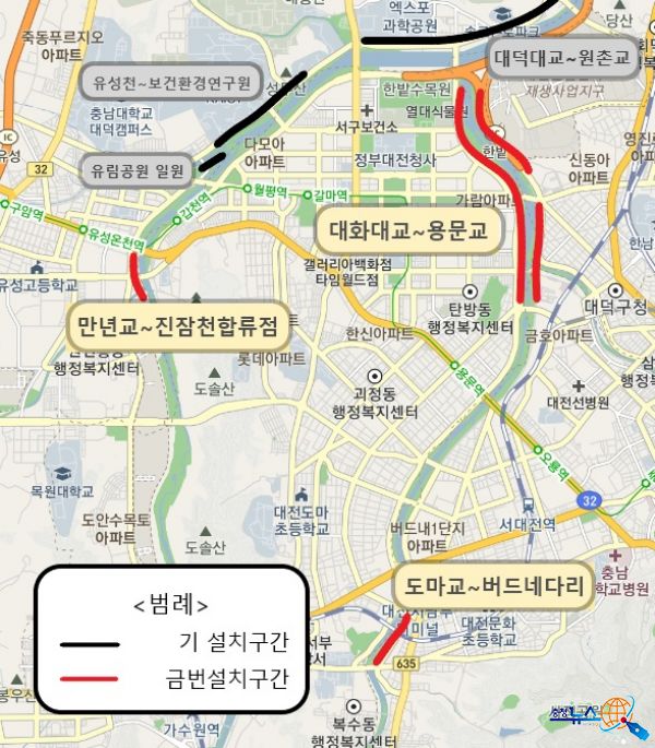 대전시 하천관리사업소는 야간범죄와 시민들의 안전사고를 예방하기 위해 갑천ㆍ유등천 산책로 122곳에 보안등을 설치했다“고 19일 밝혔다. 갑천ㆍ유등천은 대전천에 비해 상대적으로 어두워 야간에 하천변을 산책하는 시민들이 불편함을 호소했던 곳이며, 특히 산책로는 자전거도로보다 조명시설이 부족해 개선이 시급했다. 대전시가 재난안전특별교부세 5억 원을 들여 설치한 보안등은 태양광을 에너지원으로 이용하기 때문에 친환경적이고 하천범람 등의 재해에도 비교적 안전하다. 대전시 하천관리사업소는 향후 연차적으로 갑천ㆍ유등천의 시내권역 하천변 산책로에 보안등을 설치해 안전한 밤길을 조성할 계획이다. 하천관리사업소에 따르면 갑천과 유등천의 산책로 길이는 총 60.5㎞(갑천-39.9㎞ 유등천-20.6㎞)며, 조명을 필요로 하는 시내권역 산책로는 약 29.9㎞다. 이 중 약 8.9㎞구간에 보안등이 설치돼있으며, 사업소는 남은 21㎞가량의 산책로에도 보안등을 세울 계획이다. 대전시 하천관리사업소 관계자는 “이번 사업으로 야간에 발생할 수 있는 범죄와 안전사고를 예방할 수 있을 것”이라며 “시민들이 안심하고 하천을 이용할 수 있도록 최선을 다하겠다”고 말했다.