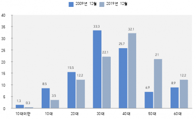 경제활동을 하지 않는 이유로는 건강 문제 30.3%가 가장 높고 여성의 경우 자녀 양육 22.7% 순이었다.
