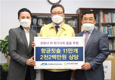 정찬 전라북도 치과의사회장은 “코로나19 지역 확산 방지를 위해 모두가 어려운 시기에, 고생하고 있는 대응기관과 도민 여러분들에게 작게나마 보탬이 되길 바란다”고 밝혔다.