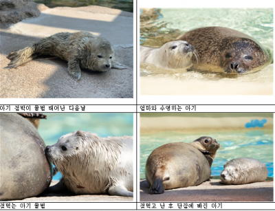 그리고 다른 개체가 주변에 못오게 아기를 지킨다 아빠 엄마사이에서 태어난 아기 물범은 현재 수영을 즐기며 해양관에서 지내고 있다.