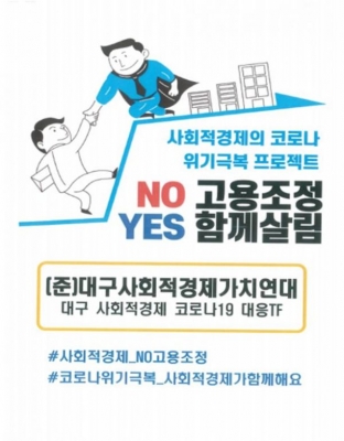 [충청뉴스큐] 대구시와 대구사회적경제가치연대는 ‘코로나19 대응 TF팀 구성’, ‘사회적경제기업의 온라인 판로 진출 지원’, ‘피해 업종별 간담회 진행’ 등의 코로나19 위기 극복을 위한 프로젝트를 본격 추진한다.