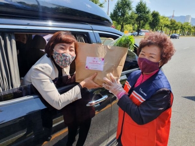 [충청뉴스큐] 경상남도자원봉사센터는 밀양시자원봉사센터와 함께 경남지역 코로나19를 극복하고 지역경제 활성화를 위한 착한소비운동의 일환으로 지난 23일 오후 2시부터 5시까지 도청 앞 중앙대로변에서 드라이브스루 마켓 행사를 진행했다.