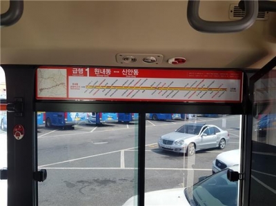대전시는 대중교통 60여 대의 버스 내 노선 안내도에 도로명 병행 표기를 완료했다고 28일 밝혔다.
