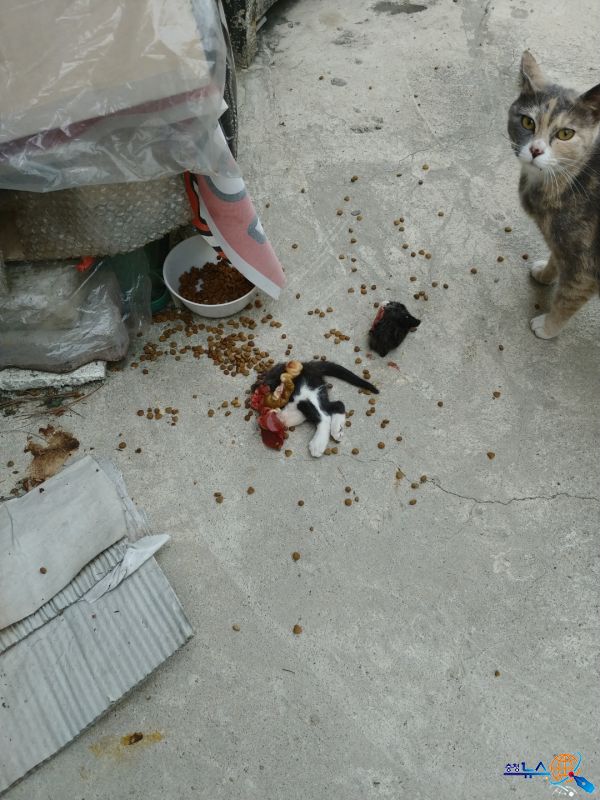 2개월도 채 안된 새끼고양이의 장기가 밖로 나오고 목이 잘리는 참혹한