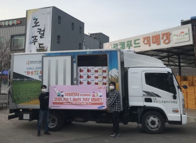 삼성전자 기흥사업소에서는 사과즙과 포도즙 등 관내 농산물로 만든 가공식품 6만여 개를 구매해 힘을 보탰다.