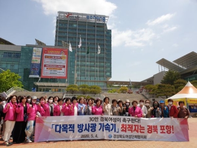 [충청뉴스큐] 경상북도는 경상북도여성단체협의회가 4일 포항시청 광장에서 150여명의 회원들이 모인 가운데‘다목적 방사광가속기 경상북도 포항 유치’를 촉구하는 성명서를 발표했다고 밝혔다.