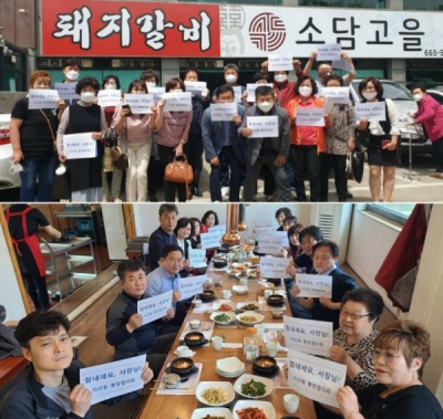 [충청뉴스큐] 평택시 지산동 통장협의회는 지난 8일 코로나19로 힘든 시간을 겪은 관내 식당을 찾아 ‘힘내세요, 사장님’ 캠페인에 동참했다.