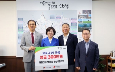 [충청뉴스큐] 대한전문건설협회 안성시협의회에서 11일 코로나19로 어려움을 겪고 있는 취약계층을 위해 써달라며 성금 300만원을 안성시에 기탁했다.