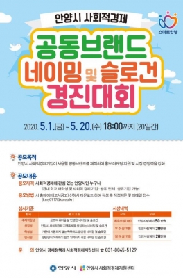 [충청뉴스큐] 안양시가 사회적경제기업의 마케팅을 지원을 위해 오는 20일까지 사회적경제 공동브랜드를 공모한다.