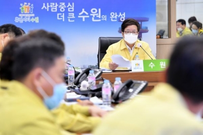14일 수원시청 재난안전상황실에서 열린 상황점검회의를 주재한 염태영 수원시장은 “모든 방법을 동원해 킹핀 볼링장 이용자를 신속하게 파악하고 진단검사를 받을 수 있도록 하라”며 “54번 확진자와 같은 시간에 킹핀 볼링장을 이용한 분은 즉시 신고해주시고 대인 접촉을 피해 달라”고 당부했다.