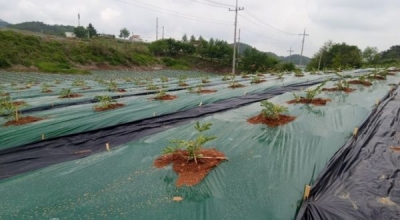 군은 자부담을 포함해 사업비 1억663만원을 들여 수박 피복 비닐 지원 사업을 지난 4월까지 완료했으며 농가별 비닐 멀칭을 확인했다.