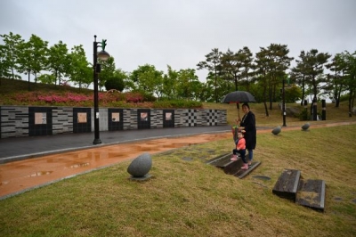 공원 중심부에는 정 시인의 일대기를 보여주는 시인의 가벽이 늘어서 있다.