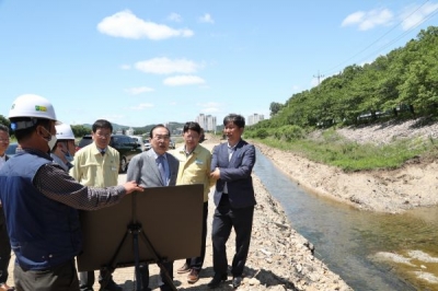 보청1 자연재해위험개선지구 정비사업으로 동다리 재가설공사와 함께 추진하는 본 공사는 지난해 말 착공해 현재 총연장 1.15km 중 약300m를 설치했으며 올해 내 방수로 설치 공정을 완료할 계획이라고 전했다.