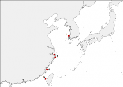 한국의 칠산도, 중국의 지우산섬, 우즈산섬, 대만의 마주섬, 펑후섬