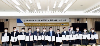 경기도와 고용노동부 경기지청, 고양·부천 등 6개 시군, GS리테일 롯데GRS, BGF리테일 코리아세븐, 한국미니스톱 등 편의점 프랜차이즈 5개사는 26일 경기도청 북부청사에서 ‘노동권익 서포터즈 활동지원 업무협약’을 체결했다.