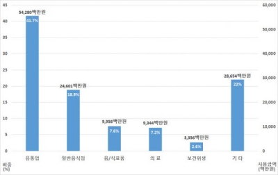 경남형 긴급재난지원금 지급수단 ‘경남사랑카드’를 발급한 nh농협은행과 bnk경남은행이 제공한 자료에 따르면 동네마트나 편의점 등 유통업에서의 사용이 542억원, 한식, 중식 등 일반휴게음식점에서 246억원, 정육점과 청과물, 농수산물 구입에 99억원 등 3개 분야의 소비가 887억원을 차지했다.