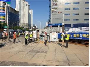 [충청뉴스큐] 대구시도시철도건설본부는 건설현장 중 도심지에 위치한 2호선 죽전역 서편 출입구 현장 근로자들을 대상으로 코로나19 대응 모의훈련을 실시했다.