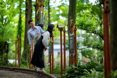 나무들 사이와 구릉을 이어주는 적절한 높이의 계단은 신혼부부들의 셀프웨딩촬영 장소로 인기가 있다.