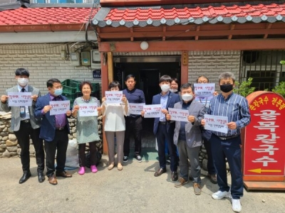 [충청뉴스큐] 평택시 지산동 8개단체협의회는 지난 28일 코로나19로 힘든 시기를 지나온 관내 식당을 찾아 ‘힘내세요, 사장님’ 캠페인에 동참했다.
