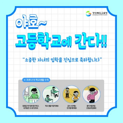 [충청뉴스큐] 경북교육청은 장기간의 원격수업과 오는 3일 고1·중2학년의 등교수업으로 인한 신입생 학부모의 불안감 해소를 위해 중·고등학교 교육과정을 알기 쉬운‘카드뉴스’를 제작해 제공한다고 2일 밝혔다.
