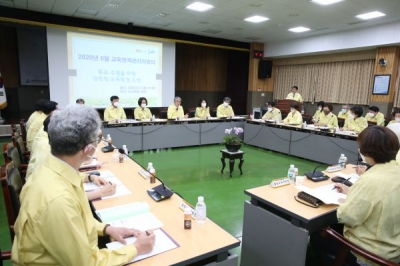 이번 회의에서는 학교가 학생의 안전과 교육과정 운영에 집중할 수 있는 도교육청 차원의 업무 정비 결과 공유 순차적 등교수업 이후 발생할 수 있는 교육정책·현안에 대한 지원 방안 안내 등교수업 실시 후 학교 현장 실태 점검과 극복 방안을 논의했다.