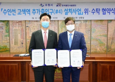 이날 협약에 따라 수원시는 95억여 원의 추가설치 사업비를 부담하고 한국철도시설공단은 매송고색로 건너편으로 출입구를 하나 더 추가하는 공사를 시행한다.