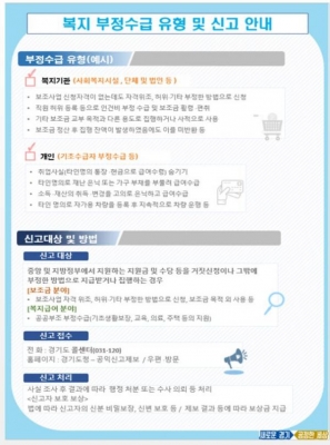 이병우 복지국장은 “부정수급·위법 사례·불법관행·예산 낭비 등에 대한 ‘4무’ 방침을 명확히 하고 도민들이 맡겨 주신 소중한 복지예산이 잘못사용되지 않도록 철저히 점검해 복지 분야에 ‘반칙이 없는 공정함’이 뿌리 내릴 수 있도록 최선을 다하겠다”고 강조했다.
