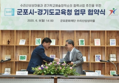 [충청뉴스큐] 경기도교육청이 8일 군포시 수리산상상마을과 경기학교예술창작소 활성화 지원을 위한 업무협약을 맺었다.