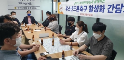 [충청뉴스큐] 경기도의회 교육위원회 박덕동 도의원, 도시환경위원회 안기권 도의원은 지난 6일 경기도의회 광주상담소에서 광주시 관내 드론축구단 관계자와 함께 드론축구단 활성화를 위한 정담회를 가졌다.