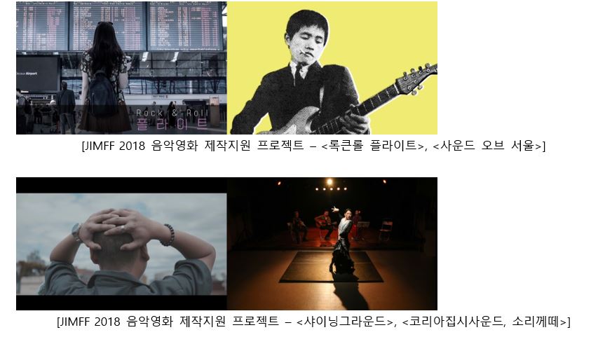 JIMFF 2018 음악영화 제작지원 프로젝트는 한국 음악영화의 장르화와 대중화에 기여하고 음악 영화인을 발굴, 지원하기 위하여 기획, 진행되는 사업이다.