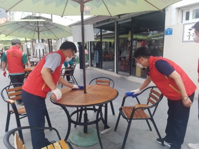 이날 방역활동은 청년숲 가게들뿐만 아니라 공동으로 사용하는 야외 테이블과 공중화장실 등에 대해서도 집중 방역을 실시해 통복시장 청년숲을 찾는 시민분들이 안심하고 청년숲을 즐기실 수 있도록 했다.
