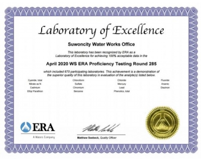 [충청뉴스큐] 수원시 상수도사업소가 미국 환경자원협회가 주관하는 국제숙련도 평가 ‘먹는 물 검사 기관’ 분야에 참가해 ‘우수 기관’으로 선정됐다.