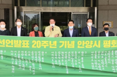 6·15공동선언 20주년을 기념하는 이날 안양시 평화메시지 선포는 민주평화통일자문회의 안양시협의회가 주관해 최대호 안양시장, 김선화 안양시의회 의장, 안대종 민주평통안양시협의회 의장, 송재영 6·15공동선언실천경기중부본부 상임대표 등 관계관 10명이 참석했다.