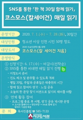 [충청뉴스큐] 인천시교육청 서구도서관은 SNS를 활용한 비대면 온라인 프로그램 ‘칼세이건의 코스모스 오는 30일 함께 읽기’를 진행한다.