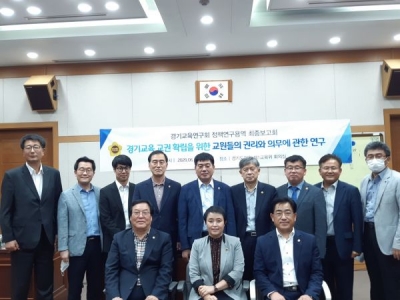 [충청뉴스큐] 경기도의회 제1교육위원회의 연구단체인 경기교육연구회는 “경기교육 교권 확립을 위한 교원들의 권리와 의무에 관한 연구”를 주제로 진행하고 있는 정책연구용역의 최종보고를 개최했다고 밝혔다.